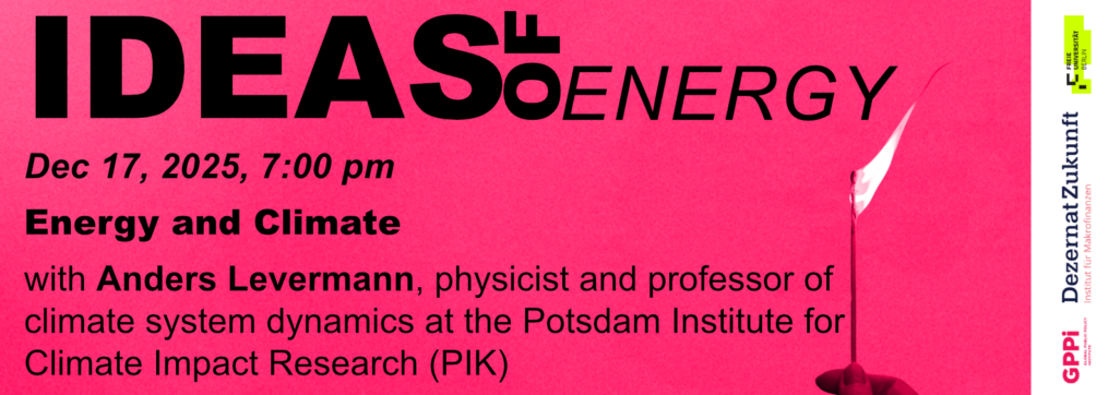 Der Kampf gegen die Klimakrise ist untrennbar mit der Frage nach Energie verknüpft: Welche Rolle spielen fossile Brennstoffe und CO₂-Budgets, technologische Innovation und politischer Wille? Wo steht Deutschland – und was braucht es, damit die Energiewende auch eine Klimawende wird? Gemeinsam mit Anders Levermann möchten wir die Wechselwirkungen von Energie und Klima in den Blick nehmen – und diskutieren, welche Dynamiken, Kipppunkte und Gestaltungsmöglichkeiten die Wissenschaft heute sieht.